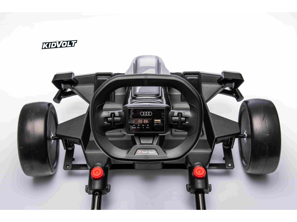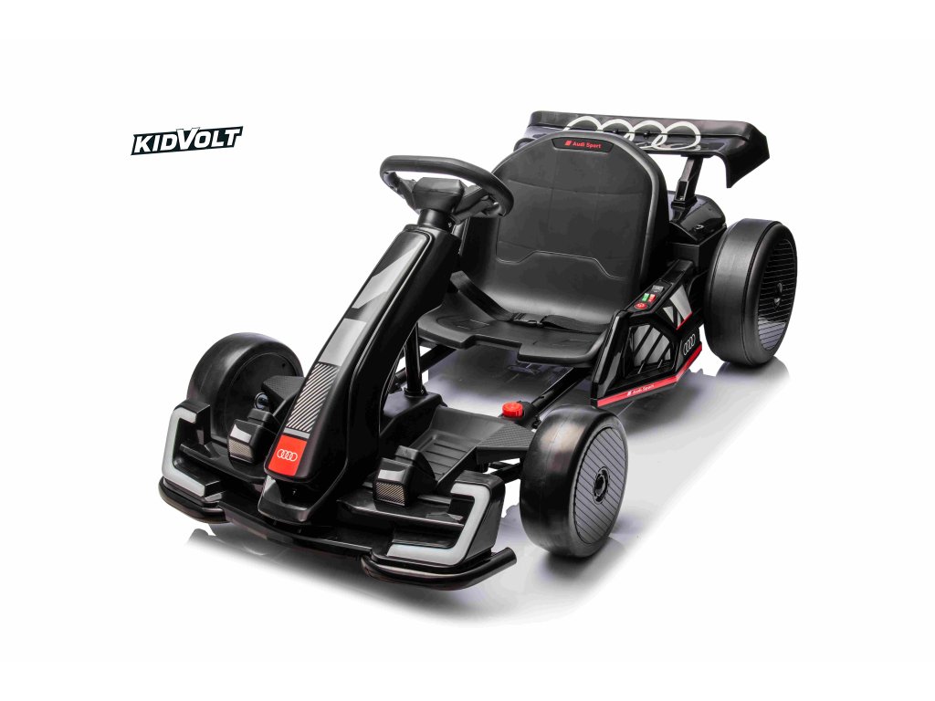 Audi elektrická driftovací motokára 2x150W | černá Přední EVA kola, zadní plastová | pomalý start | funkce draftování
