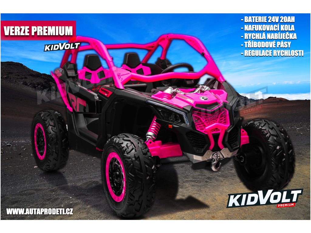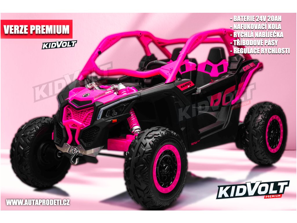 Dětská buggy CAN-AM Maverick XXL PREMIUM - 24V 20Ah - 4x200W - růžová nafukovací kola - regulace rychlosti - tříbodové pásy