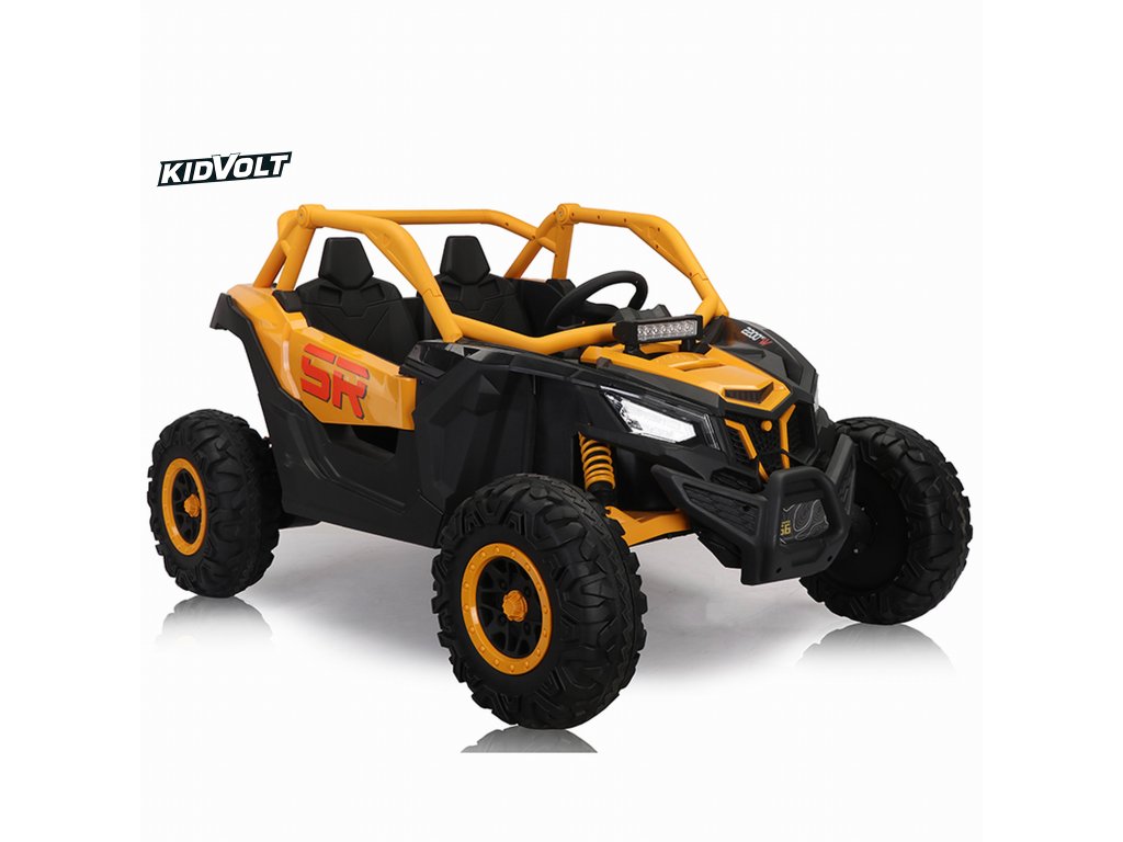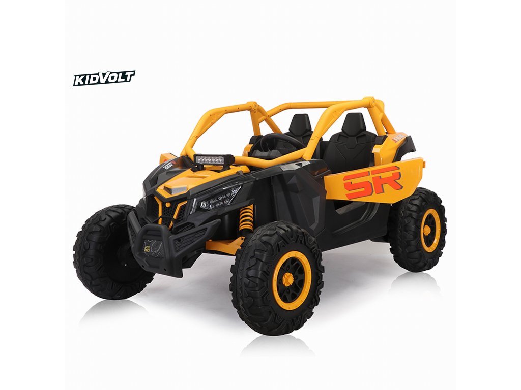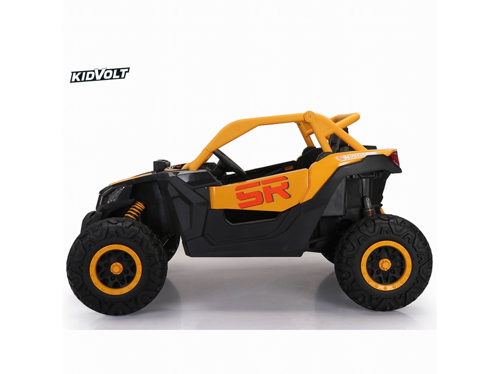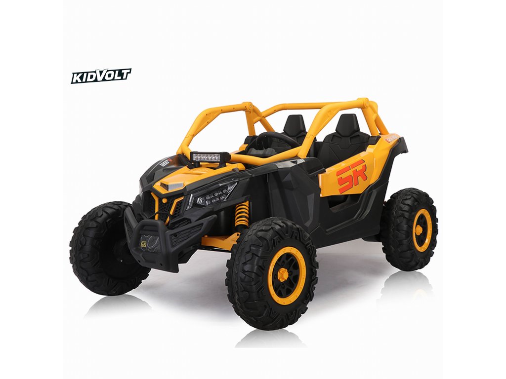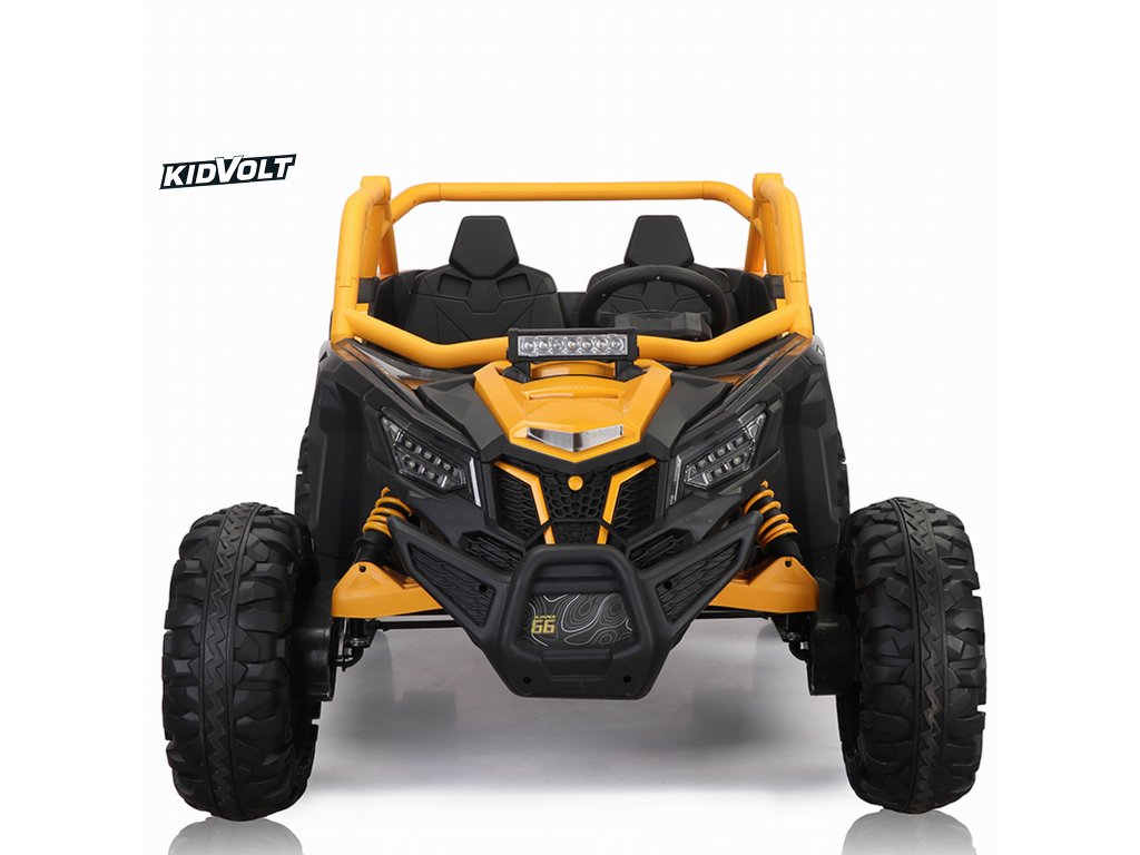 Dětská elektrická buggy SUPER 66 | 4x75W | žlutá 300W | EVA kola | funkce houpací koně | držák nápojů