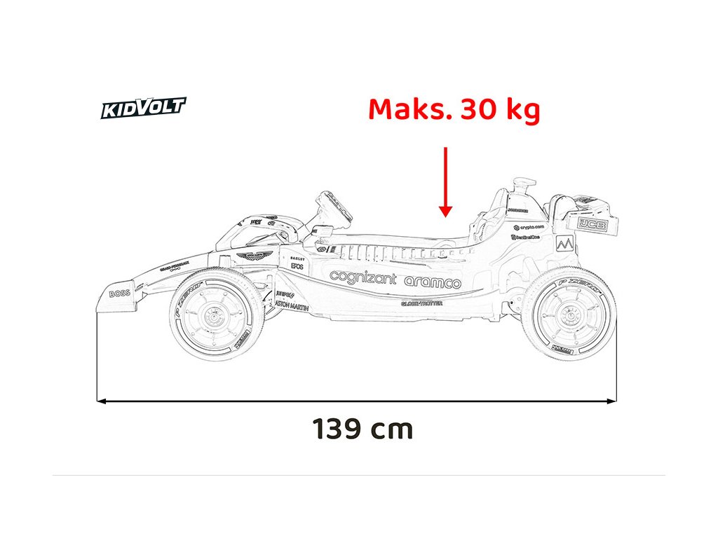 Dětská elektrická Formule 1 Aston Martin Cognizant Aramco | 150W EVA kola | 2x25W, 2x50W | MP3 a Bluetooth