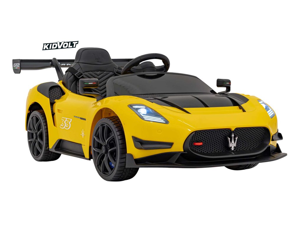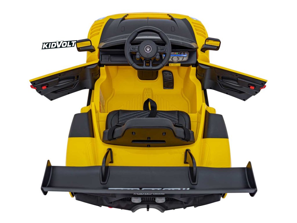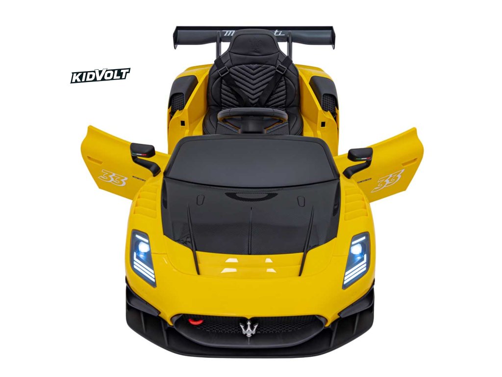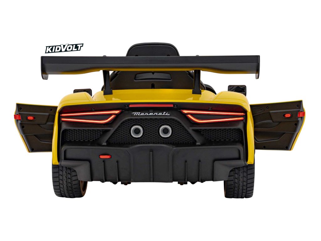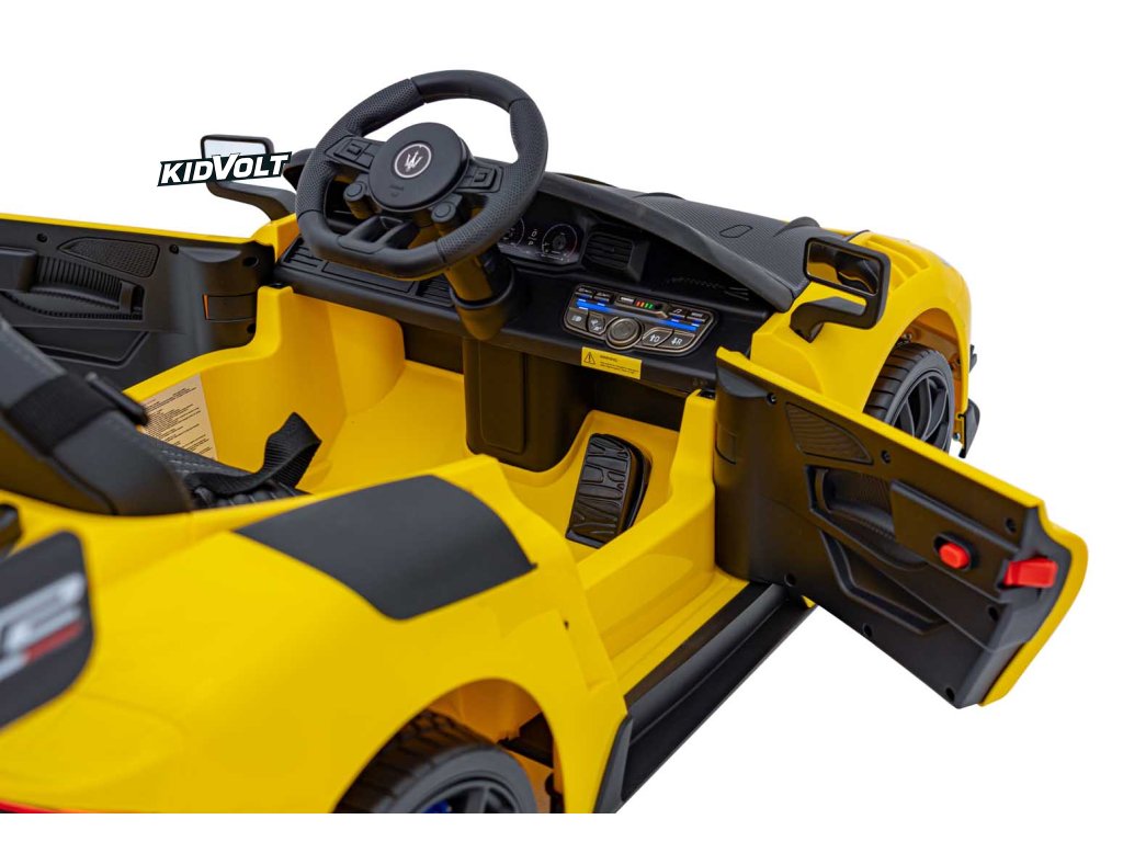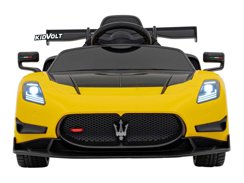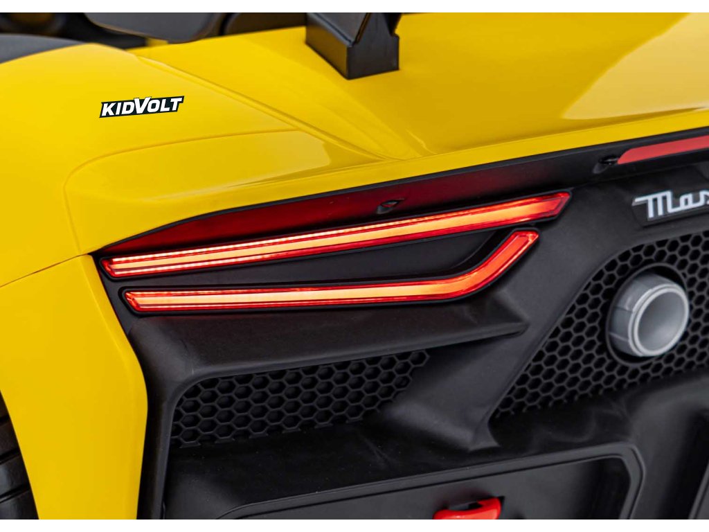 Dětské elektrické autíčko Maserati MC20 GT2 - žlutá dálkové ovládání, EVA kola, FM rádio + Řidičský průkaz + Pexeso
