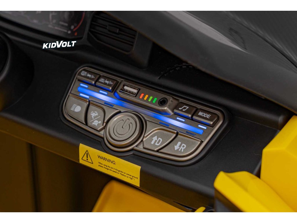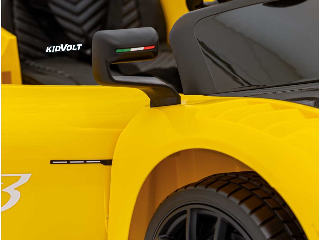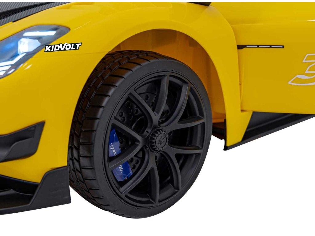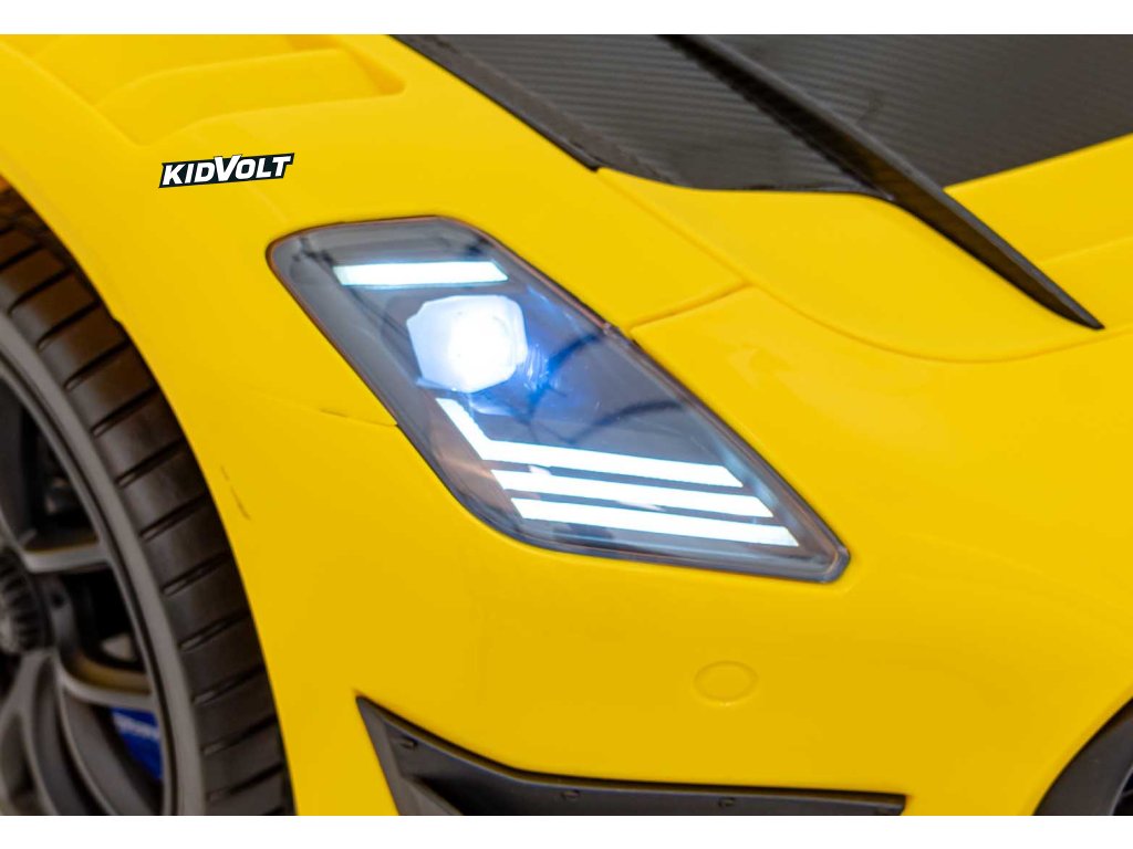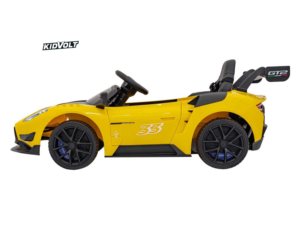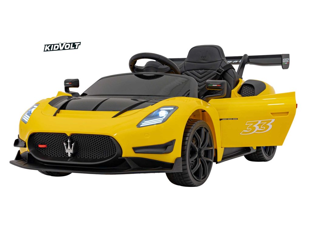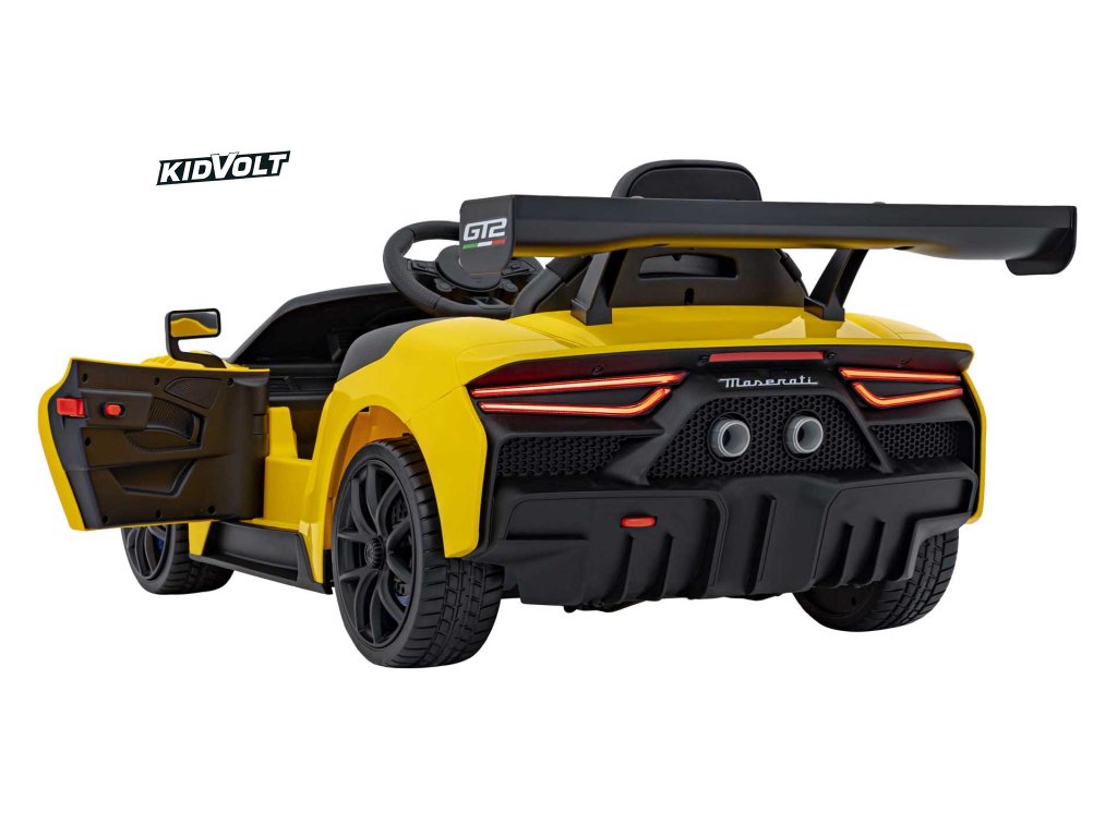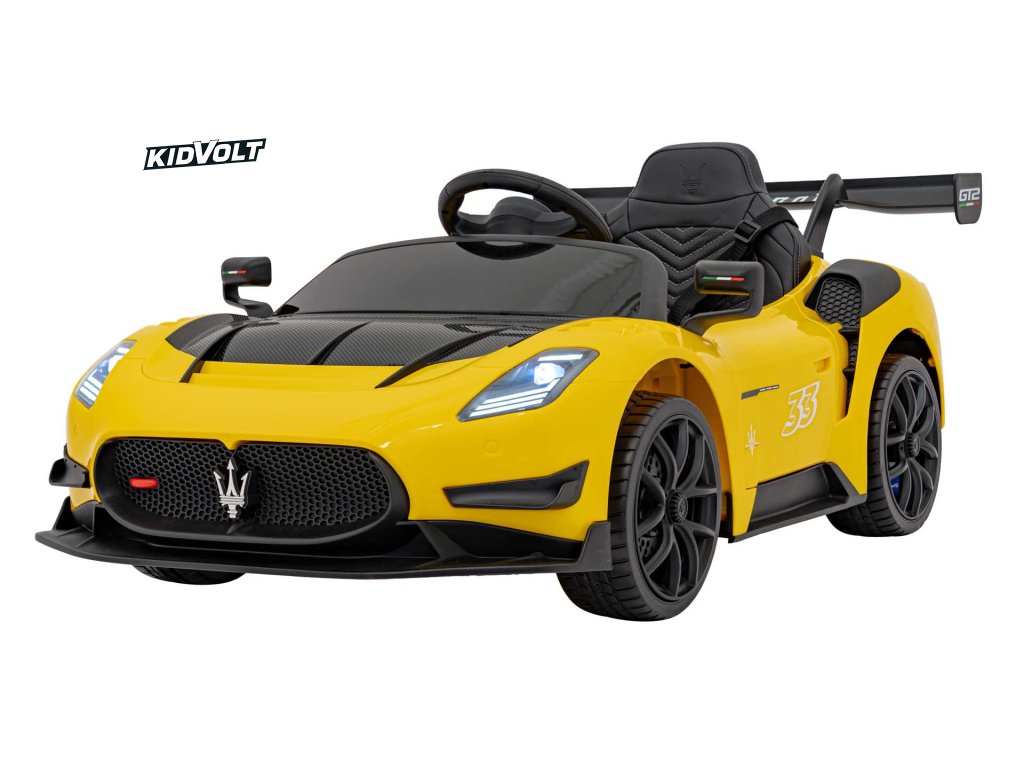 Dětské elektrické autíčko Maserati MC20 GT2 - žlutá dálkové ovládání, EVA kola, FM rádio + Řidičský průkaz + Pexeso