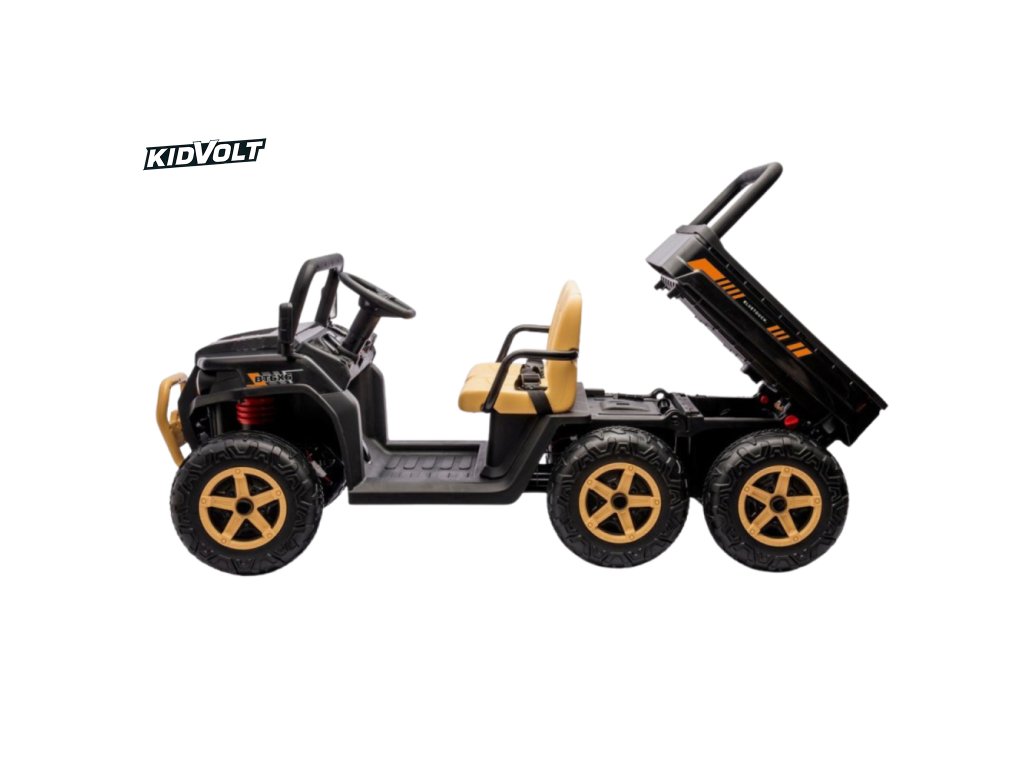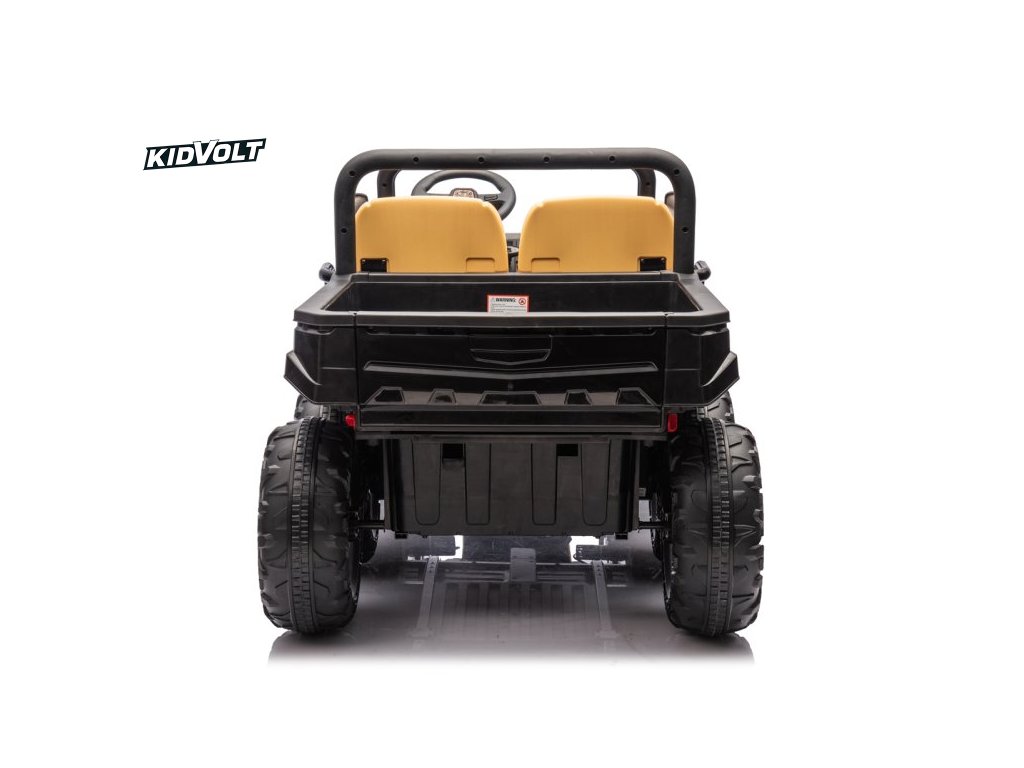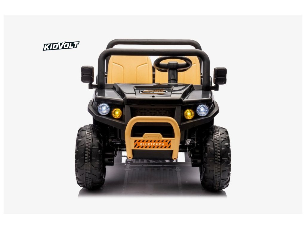 Dětské elektrické farmářské auto je navrženo pro pohodlí a bezpečnost – má široké plastové sedadlo (56 cm), bezpečnostní pásy a nosnost až 35 kg. Díky stabilní konstrukci a odpruženému podvozku se dítě cítí jistě i na nerovném povrchu.