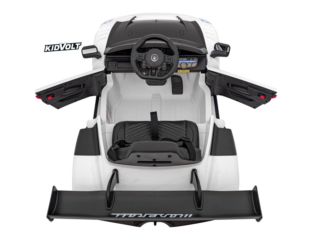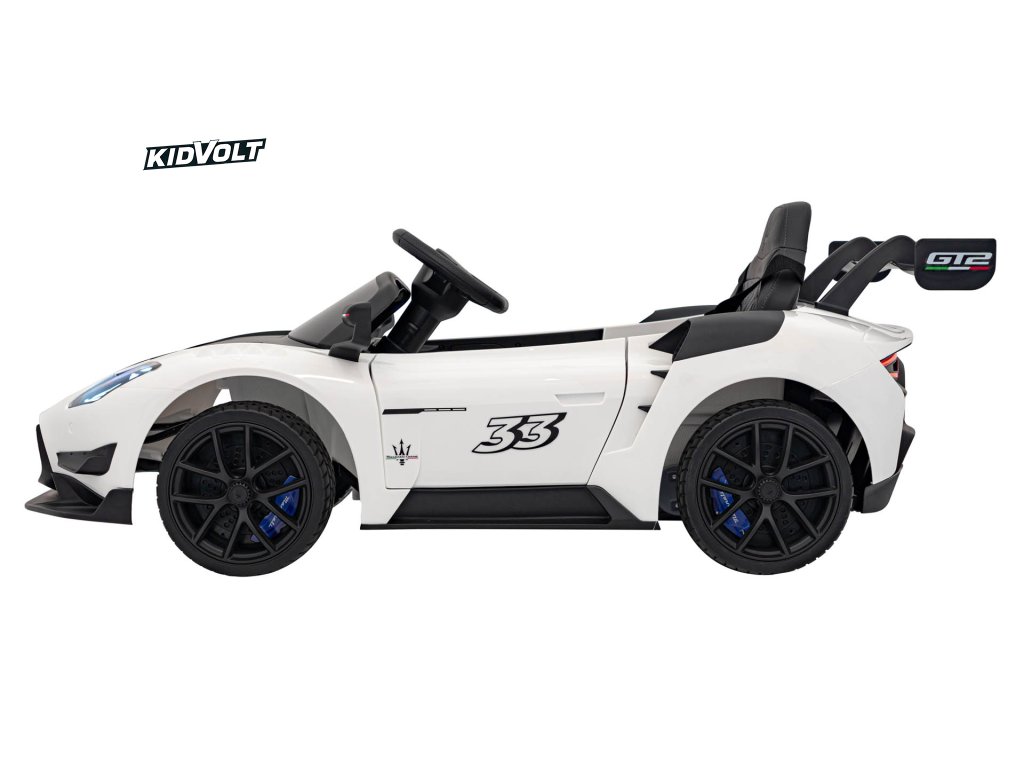 Dětské elektrické Maserati MC20 GT2 | bílá dálkové ovládání, EVA kola, FM rádio