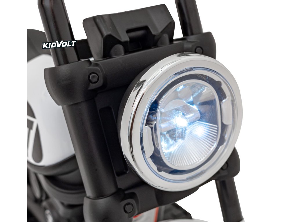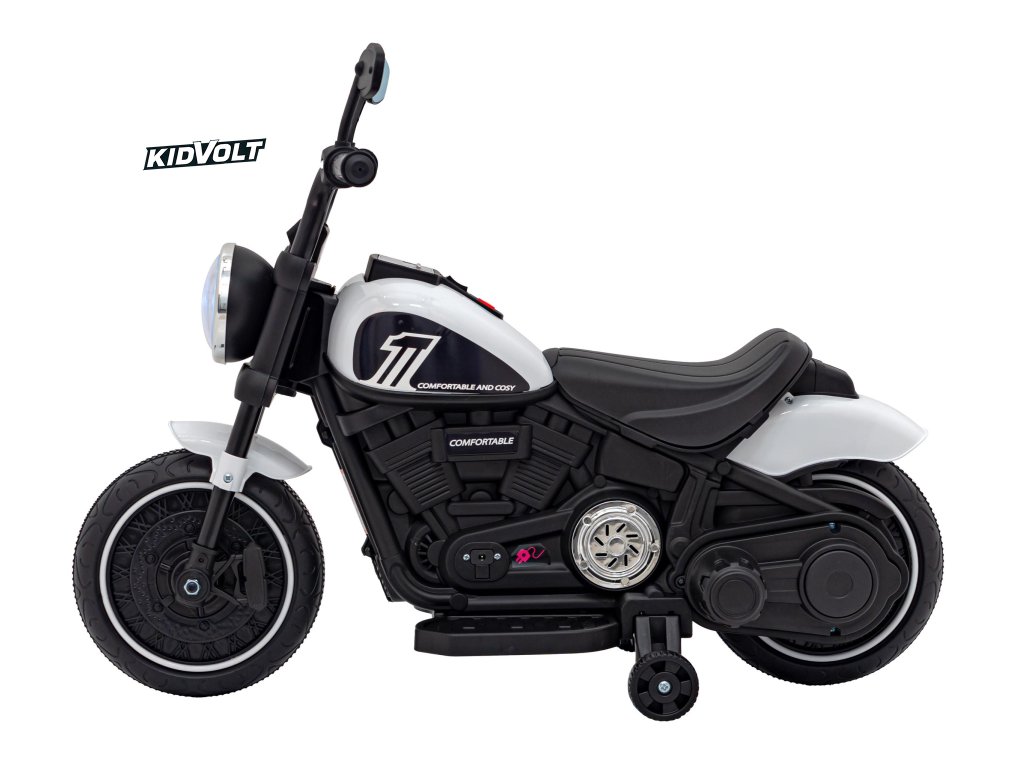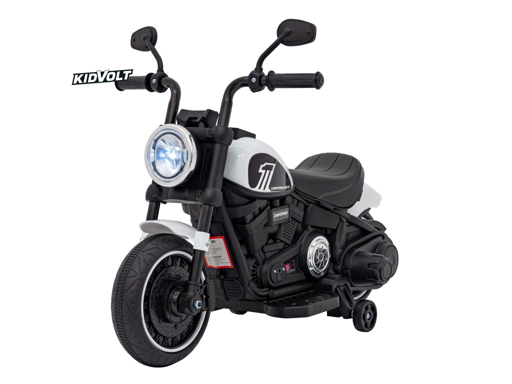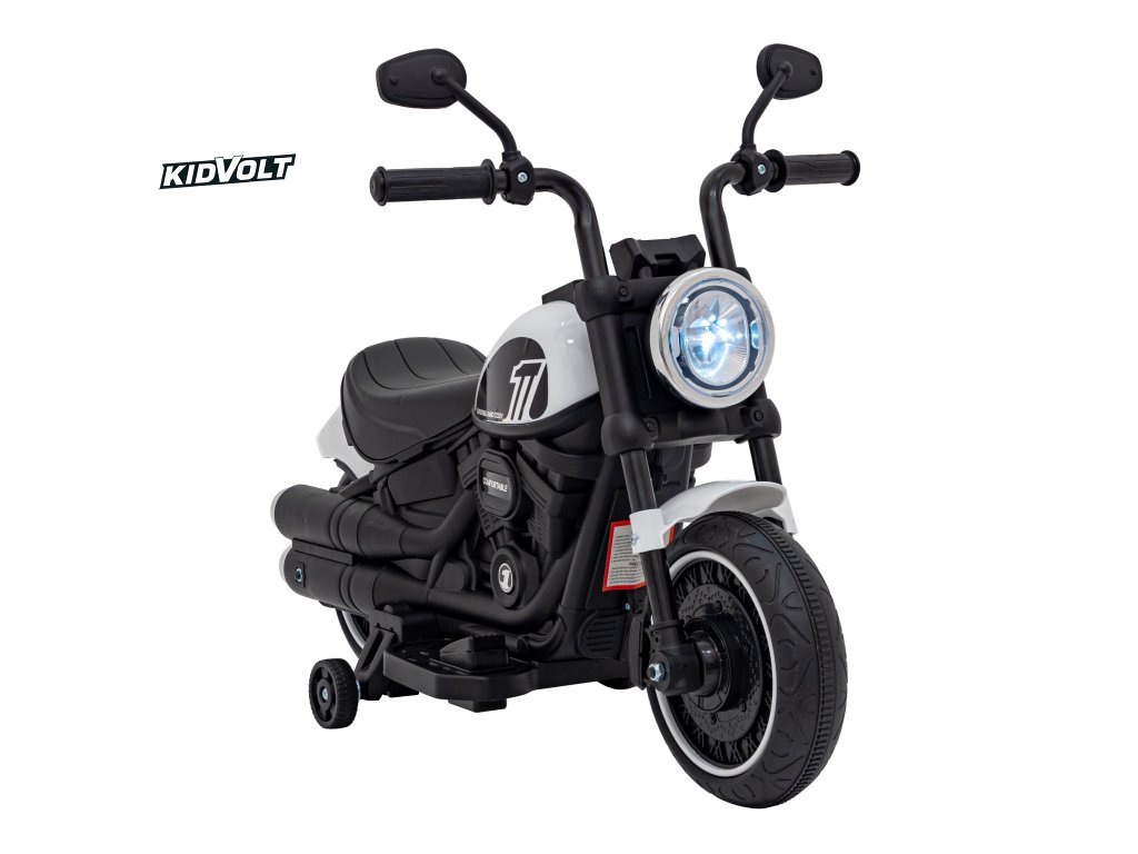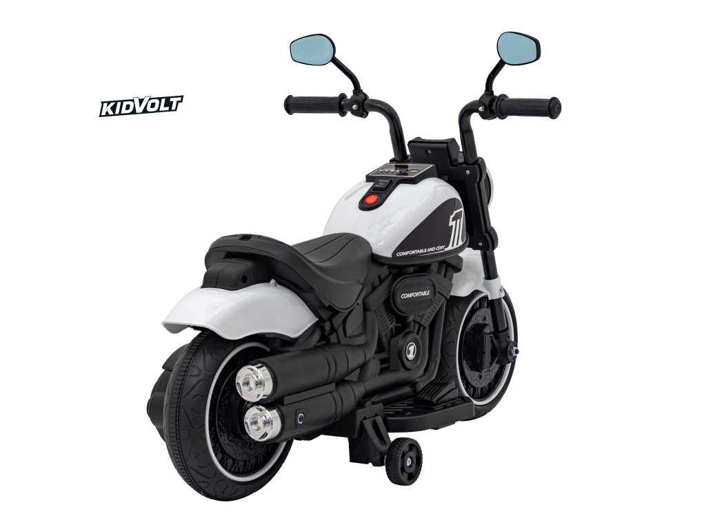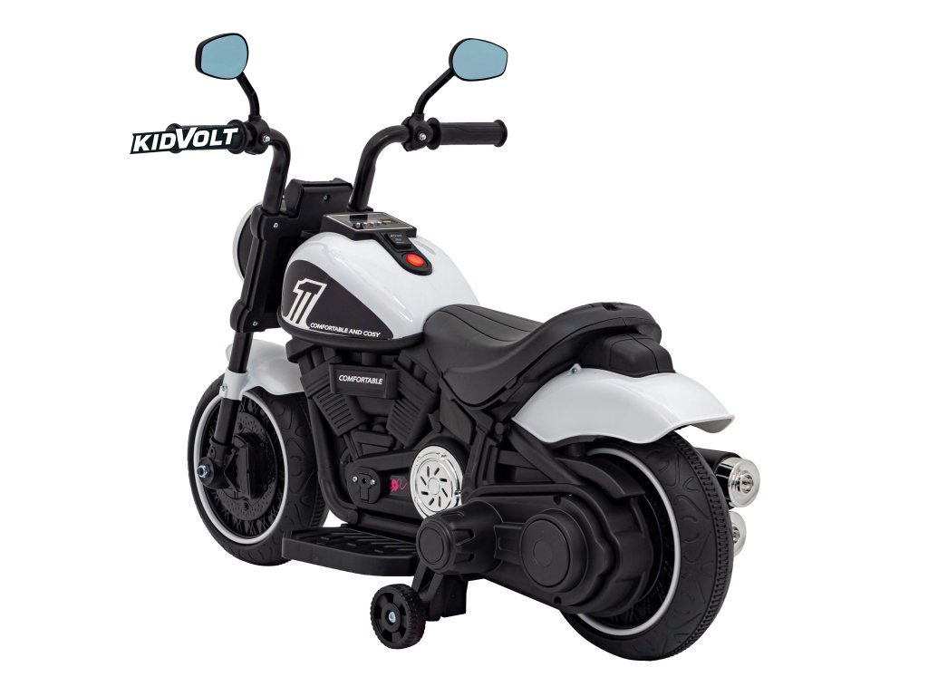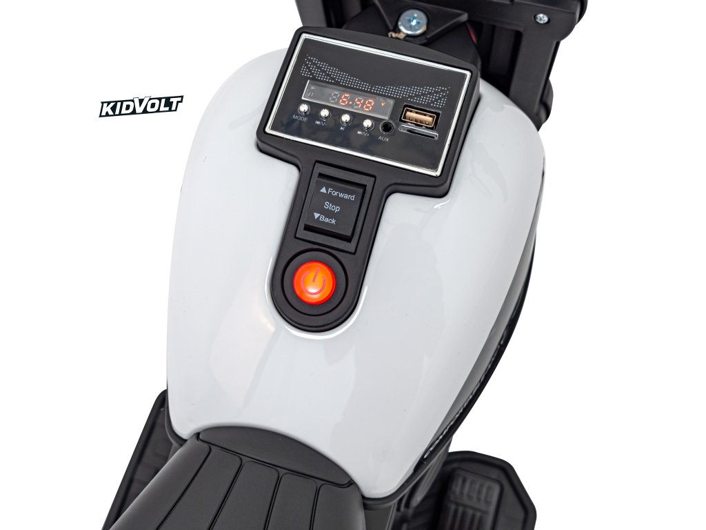Dětský elektrický chopper motorka FASTER | bílá FM rádio, vstup na SD karty, USB, indikátor stavu baterie