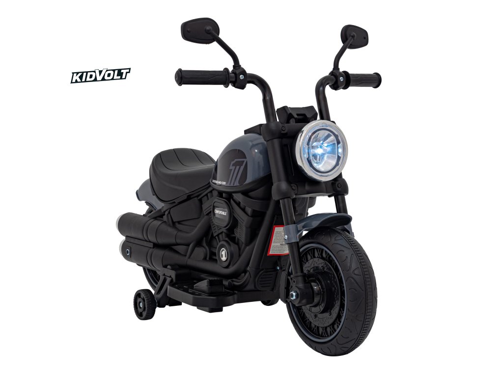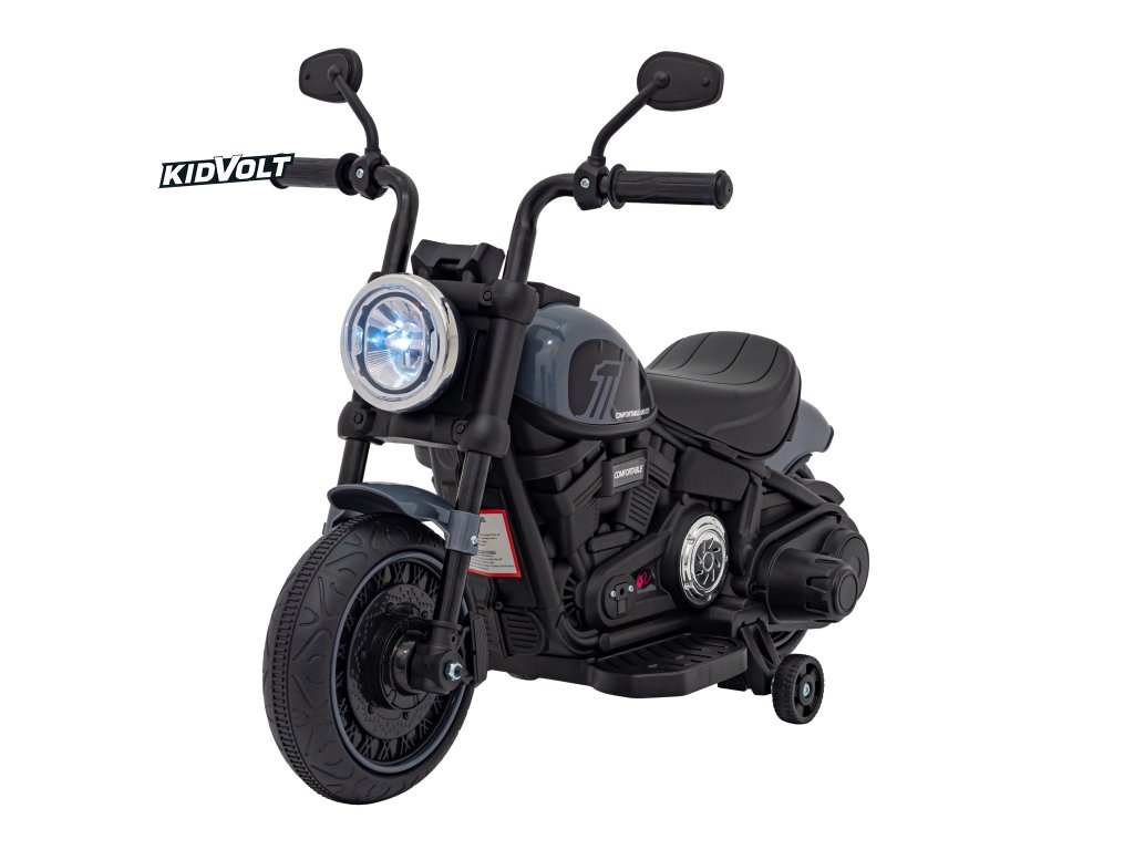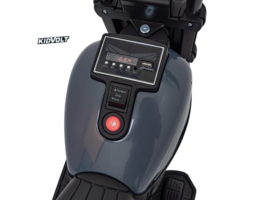 Dětský elektrický chopper motorka FASTER | šedá FM rádio, vstup na SD karty, USB, indikátor stavu baterie