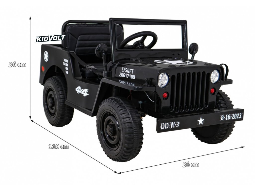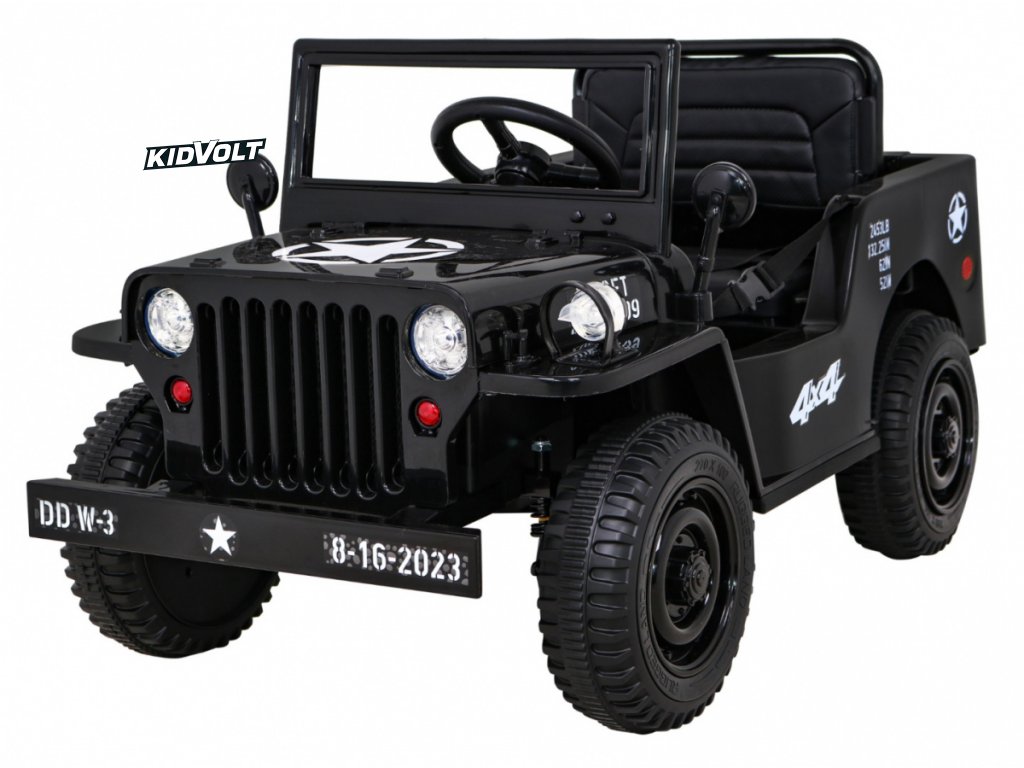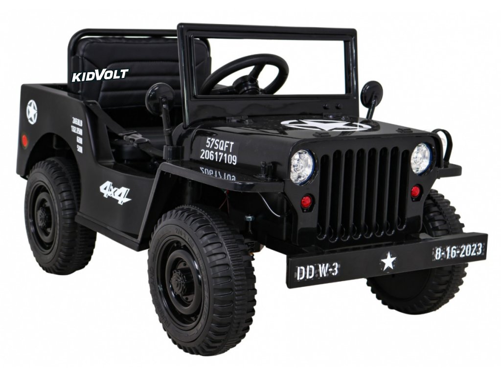 Džíp Willys 4x4 | jednomístný | 12V | černá EVA kola | hudba | osvětlení | 12V 7AH