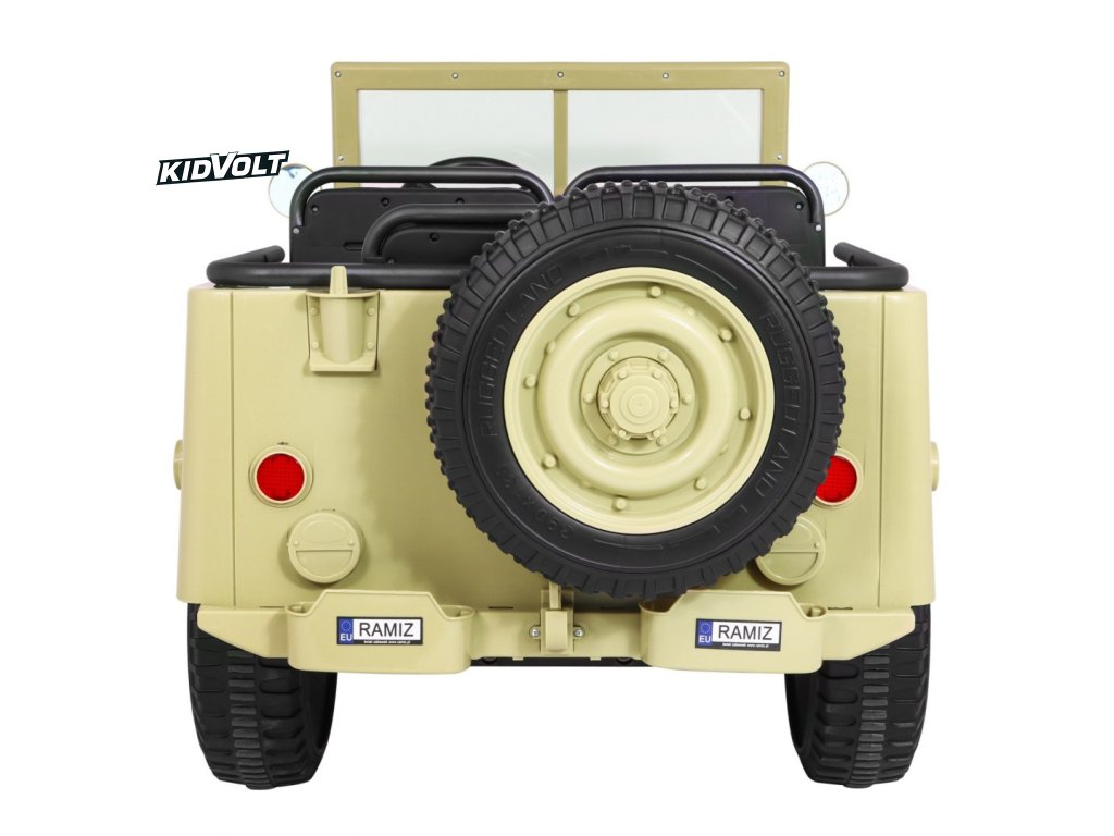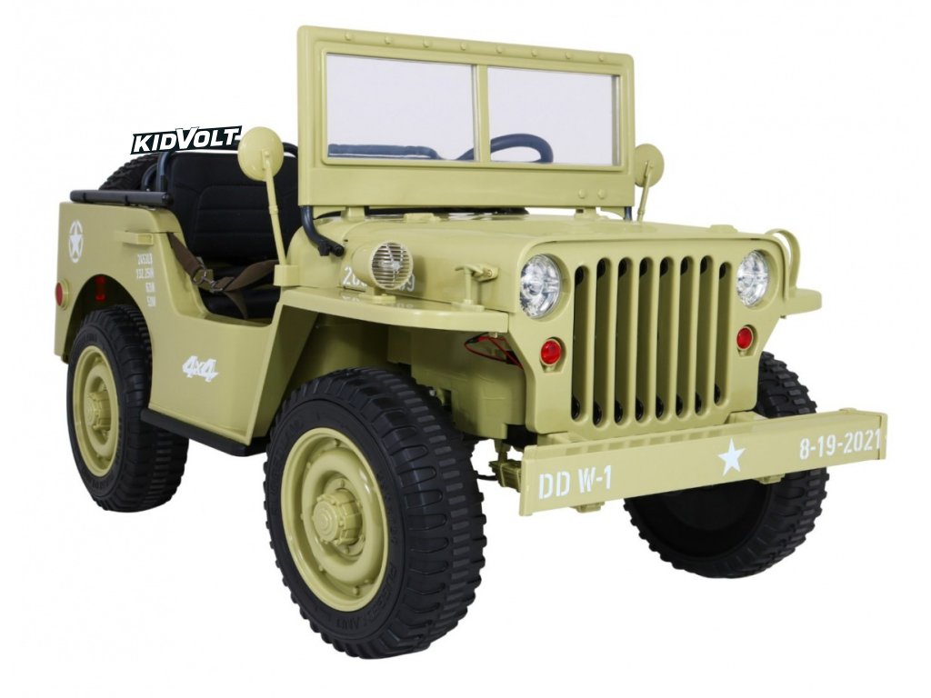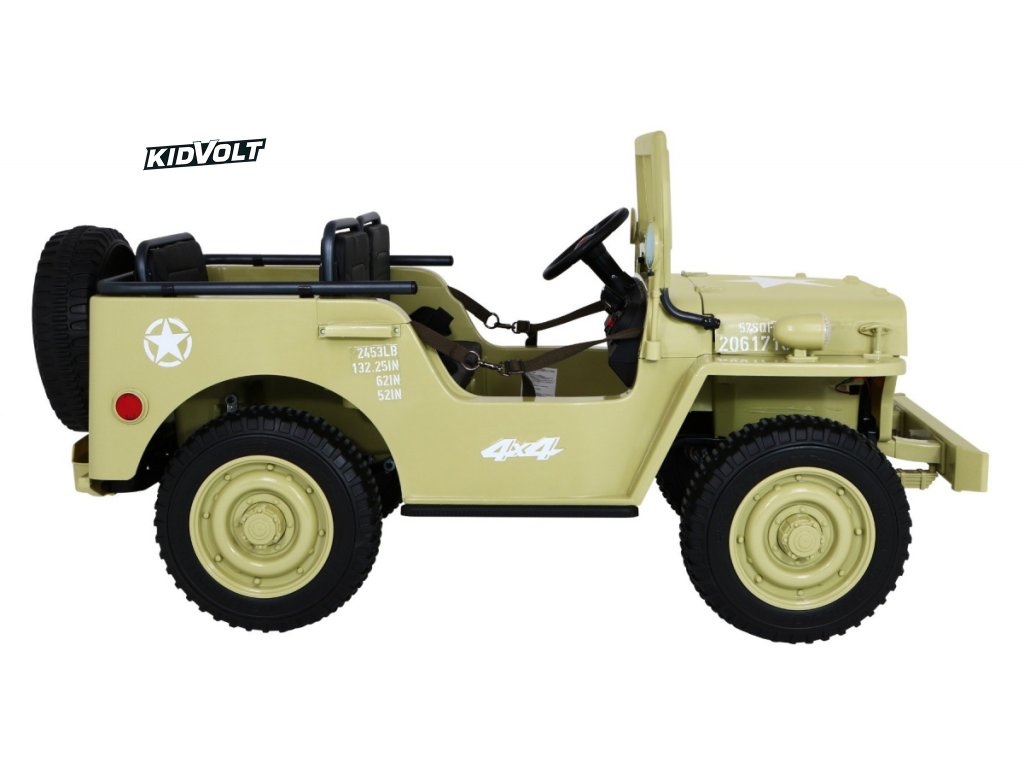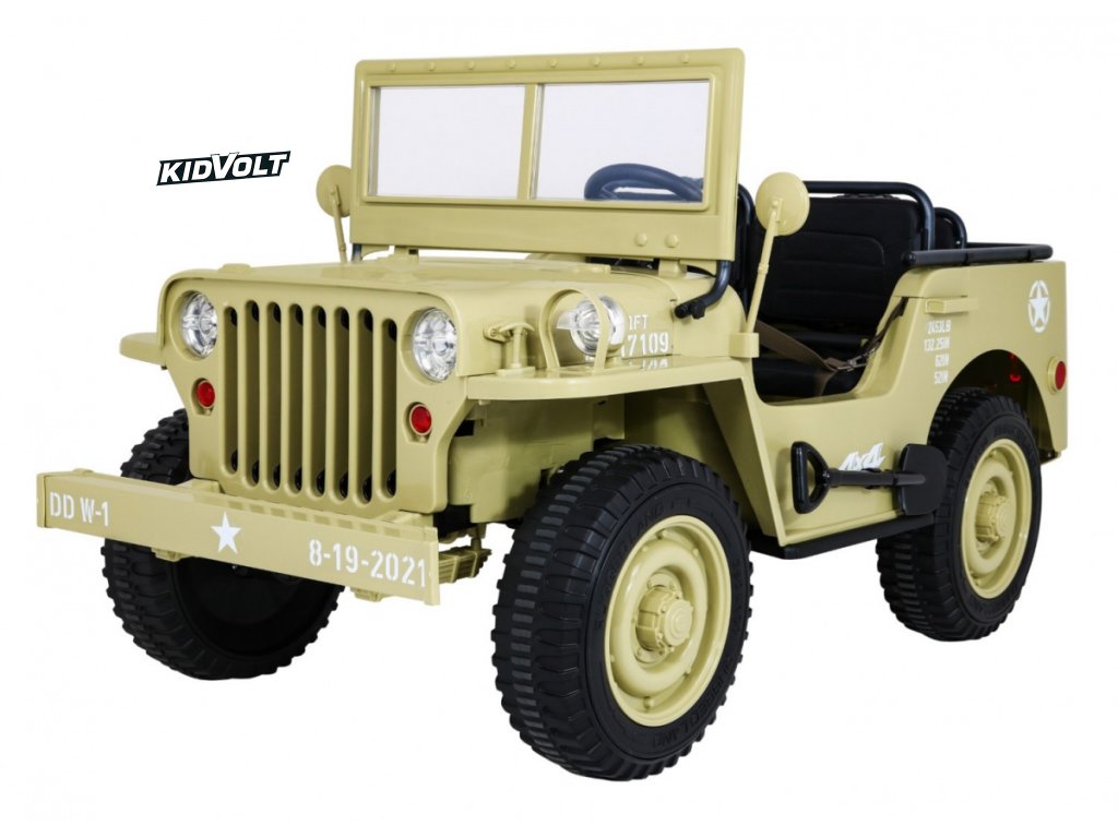 Džíp Willys 4x4 XXL | třímístný | 24V | písková ARMÁDNÍ JEEP | EVA KOLA | BLUETOOTH | 4X4 | 360W | 3 děti