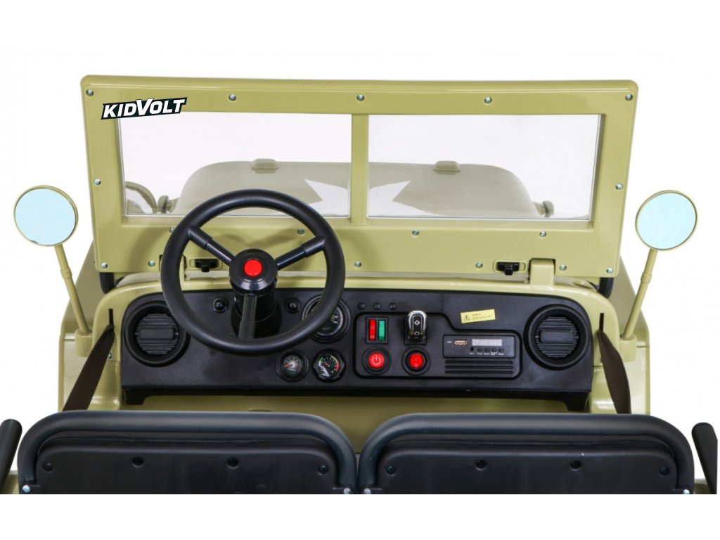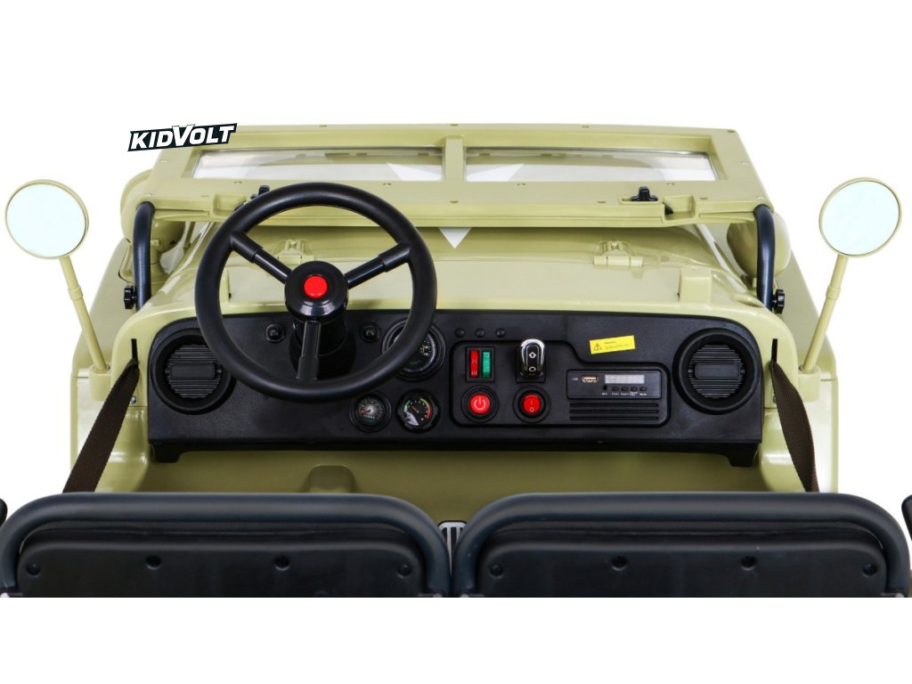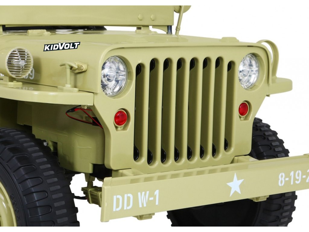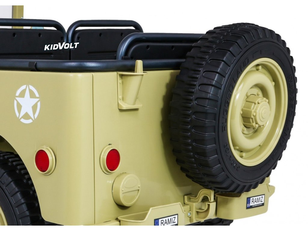 Džíp Willys 4x4 XXL | třímístný | 24V | písková ARMÁDNÍ JEEP | EVA KOLA | BLUETOOTH | 4X4 | 360W | 3 děti