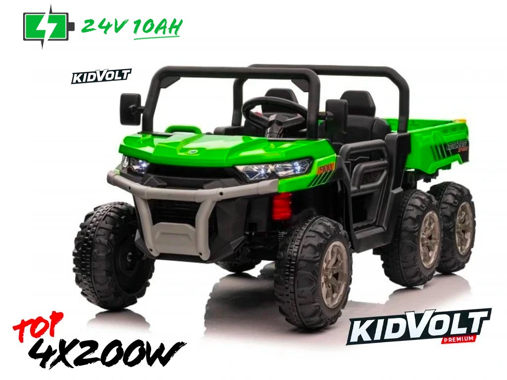 Elektrické dětské auto buggy, šestikolka 4x200W 10Ah - zelená EVA KOLA | BLUETOOTH | 24V | 4X6 | 800W + Řidičský průkaz + Pexeso