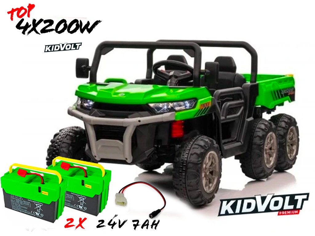 Elektrické dětské auto buggy, šestikolka 4x200W 7Ah + EXTRA 7Ah - zelená EVA KOLA | BLUETOOTH | 24V | 4X6 | 800W + Řidičský průkaz + Pexeso