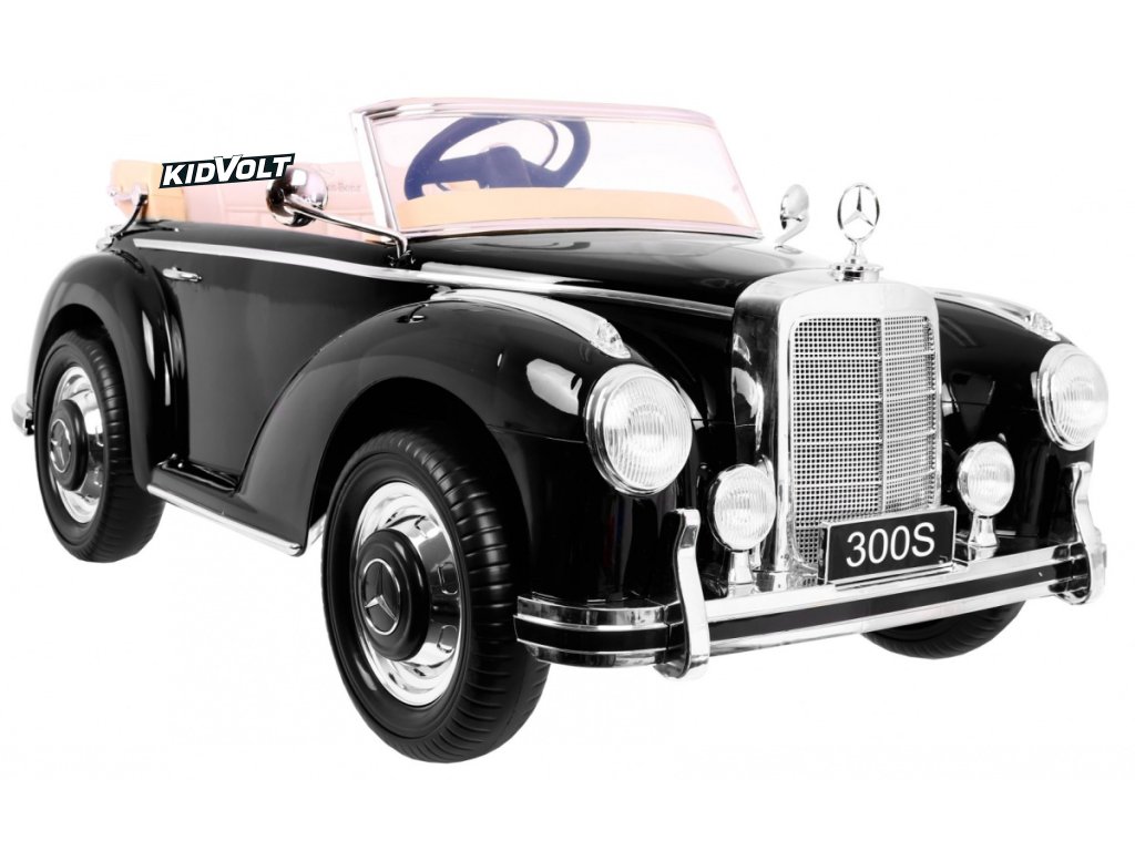 Elektrický retro Mercedes 300S | 2x35W | lakovaný černá EVA kola | 12V 10Ah | MP3 | FM rádio