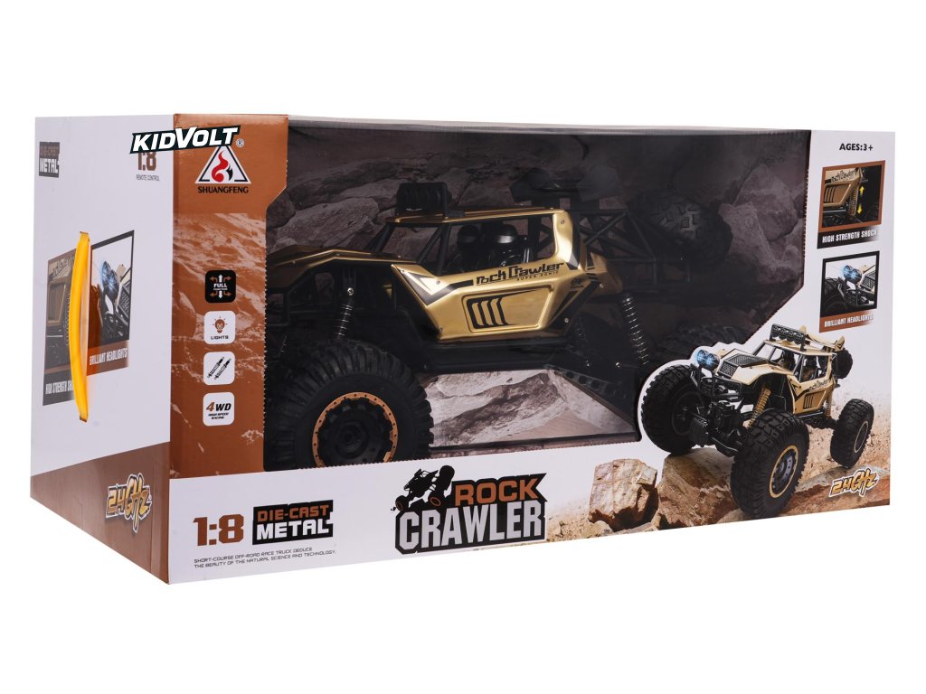 Kovový mega ROCK CRAWLER | 1:8 | 4x4 | zlatá AUTO PRO DĚTI NA DÁLKOVÉ OVLÁDÁNÍ