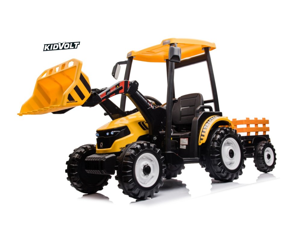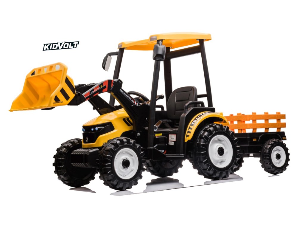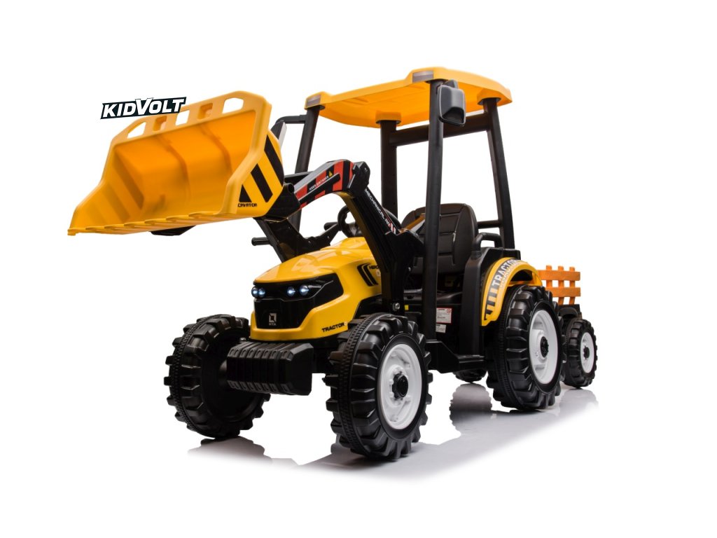 MEGA dětský elektrický traktor D68 s valníkem a nakladačem | 2x200W | žlutá PLASTOVÁ KOLA | VALNÍK I NAKLADAČ SOUČÁSTÍ CENY