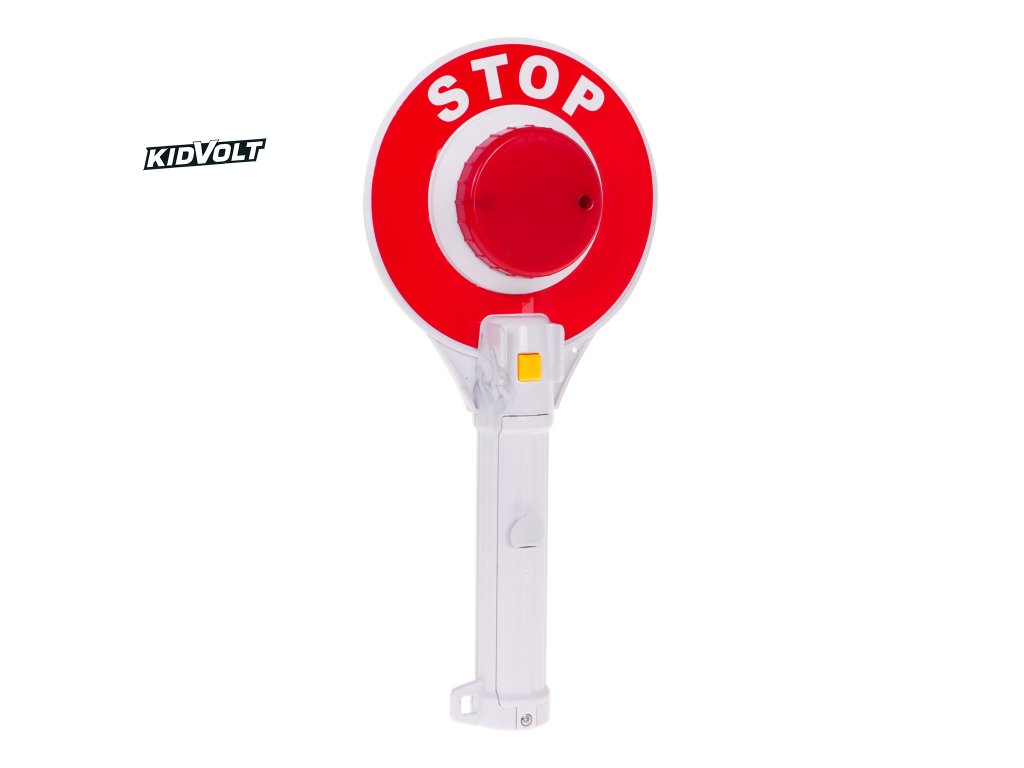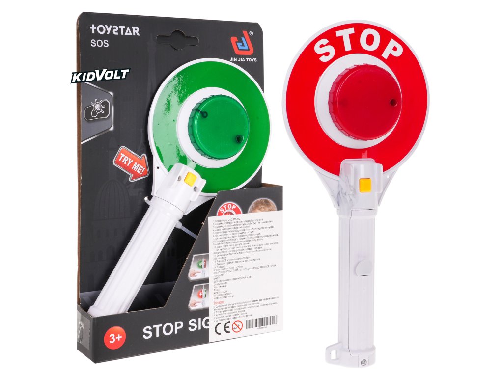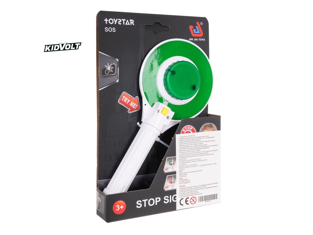 Policejní svítící "plácačka" z plastu se světlem pro všechny malé policisty. Zastavovací terč učí děti základům silničního provozu. Přední strana terče svítí červeně a druhá zeleně.