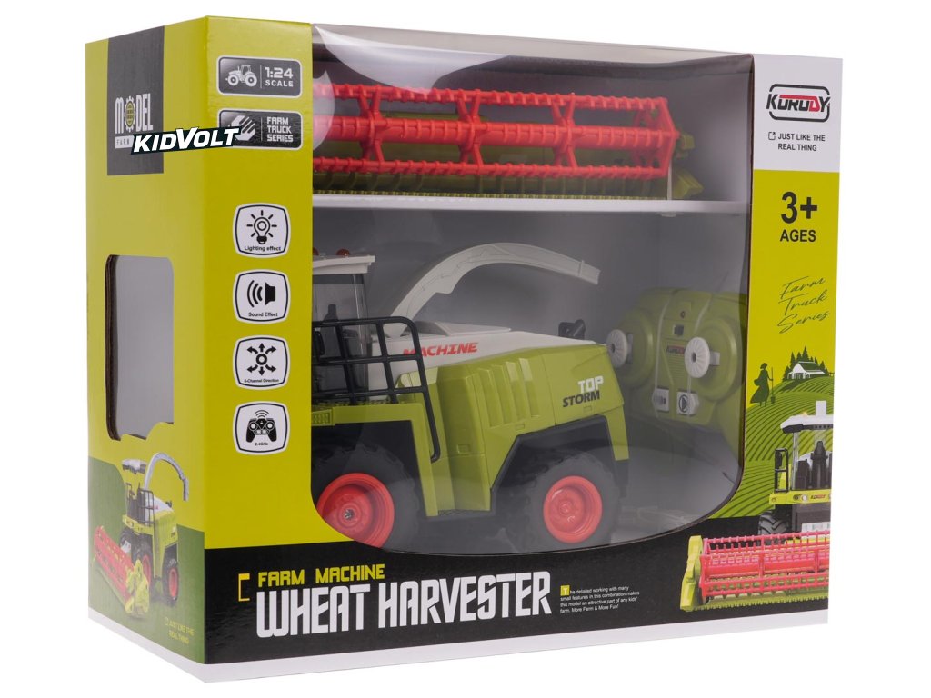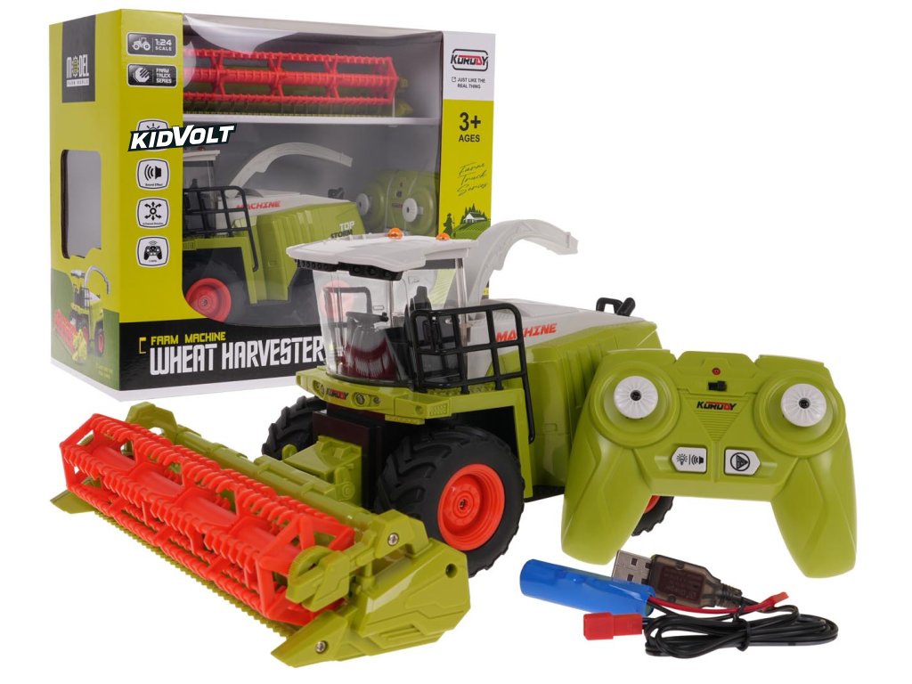 RC kombajn | 1:24 | zelená RC kombajn včetně lišty | realistické zvuky stroje